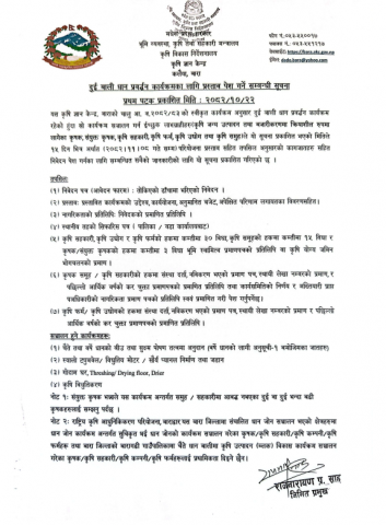 दुई बाली धान प्रवर्द्धन कार्यक्रमका लागि प्रस्ताव पेश गर्ने सम्बन्धी सूचना ।