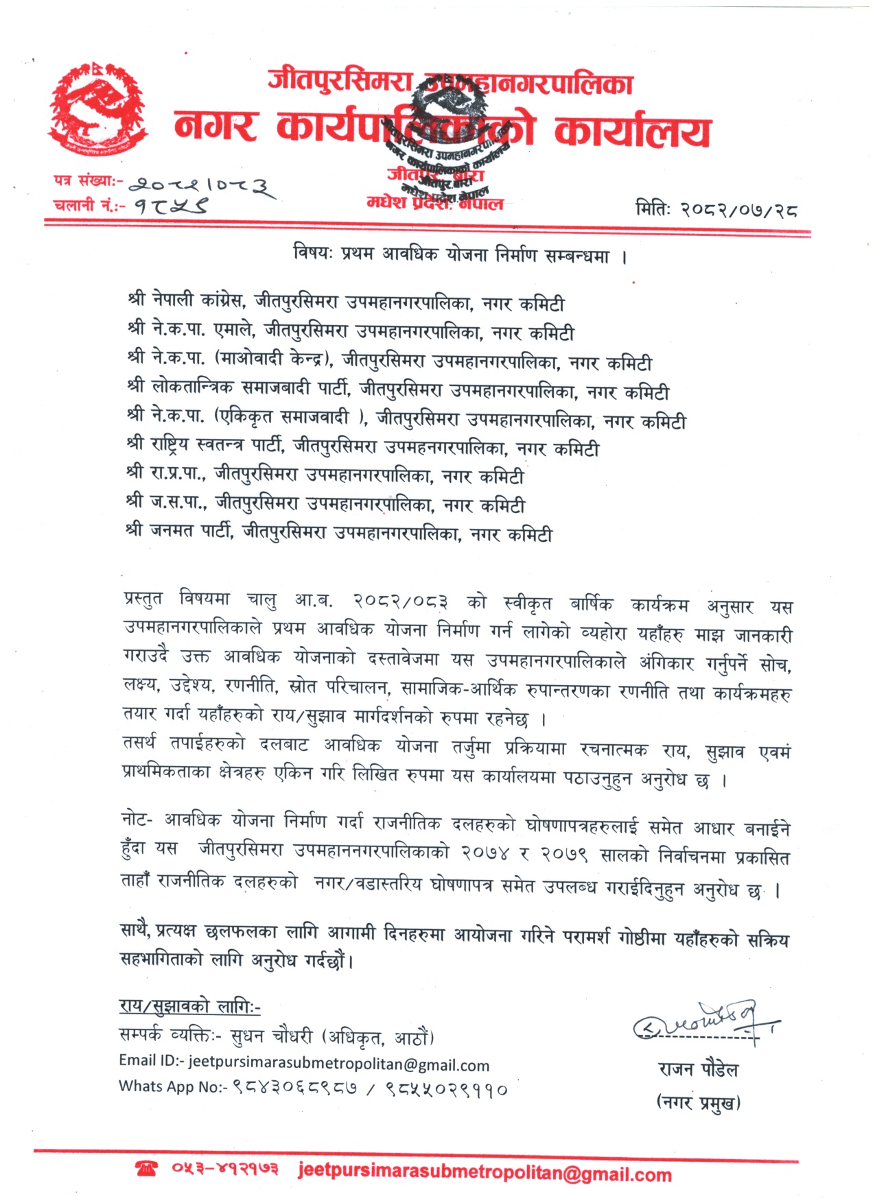 info@jeetpursimaramun.gov.np, jeetpursimarasubmetropolitan@gmail.com