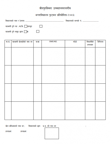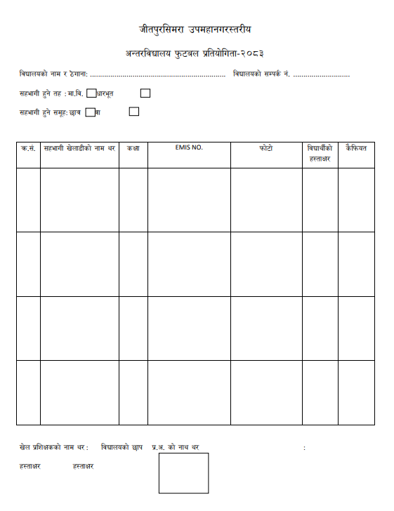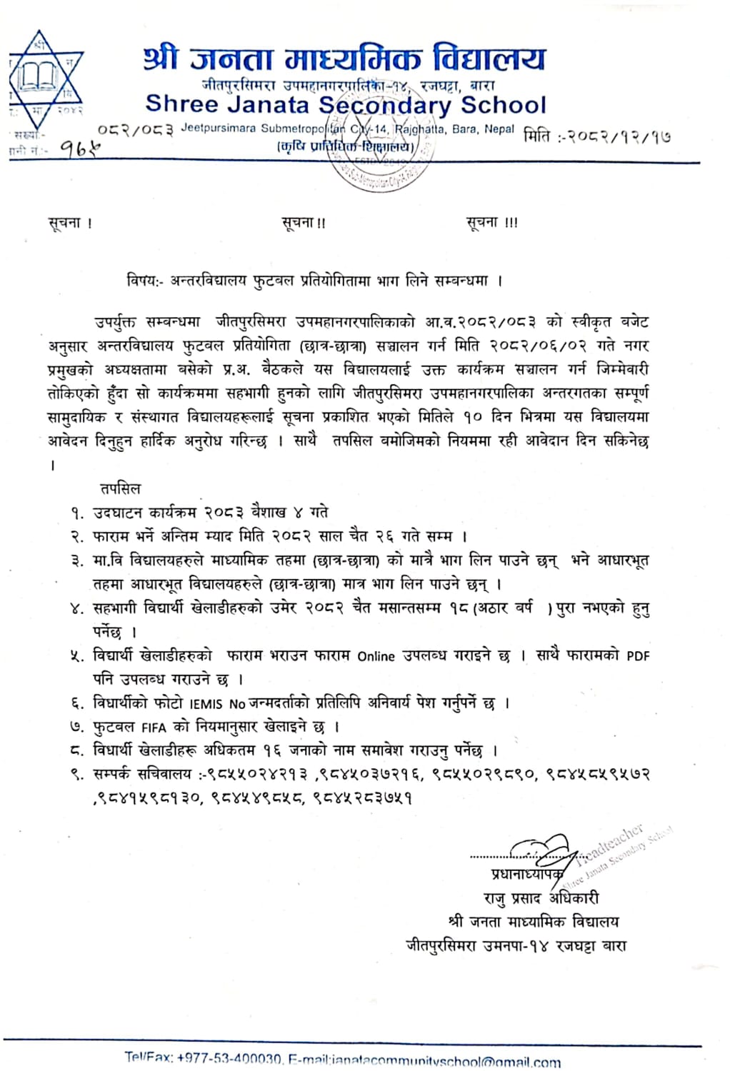 अन्तरविद्यालय फुटबल प्रतियोगितामा माग लिने सम्बन्धी सूचना ।