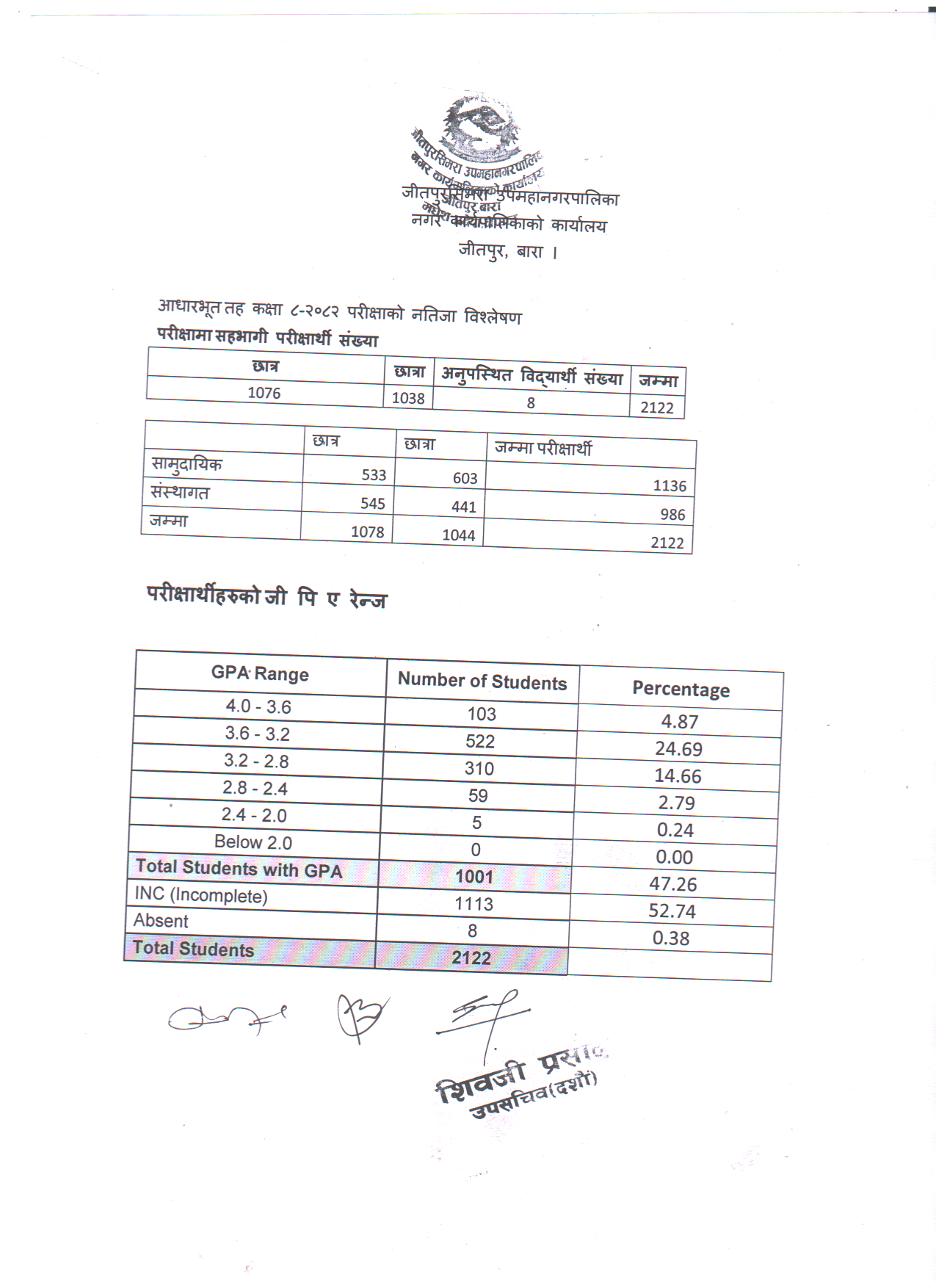 » आधारभूत तह (कक्षा ८) २०८२ को परिक्षा नतिजा विश्लेषण तालिका ।