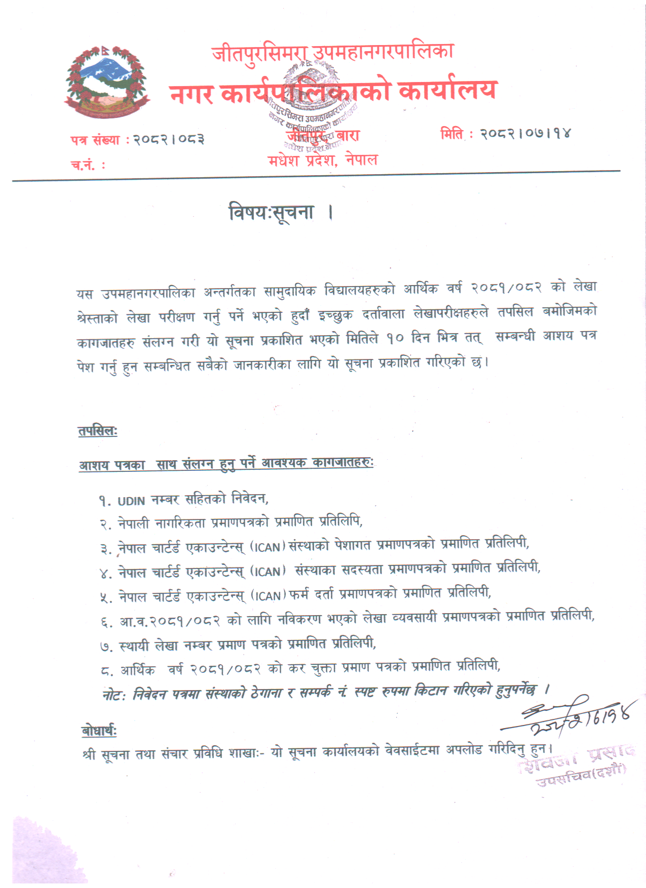 info@jeetpursimaramun.gov.np, jeetpursimarasubmetropolitan@gmail.com