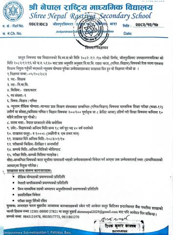 शिक्षक आवश्यकता सम्बन्धी विज्ञापन ।