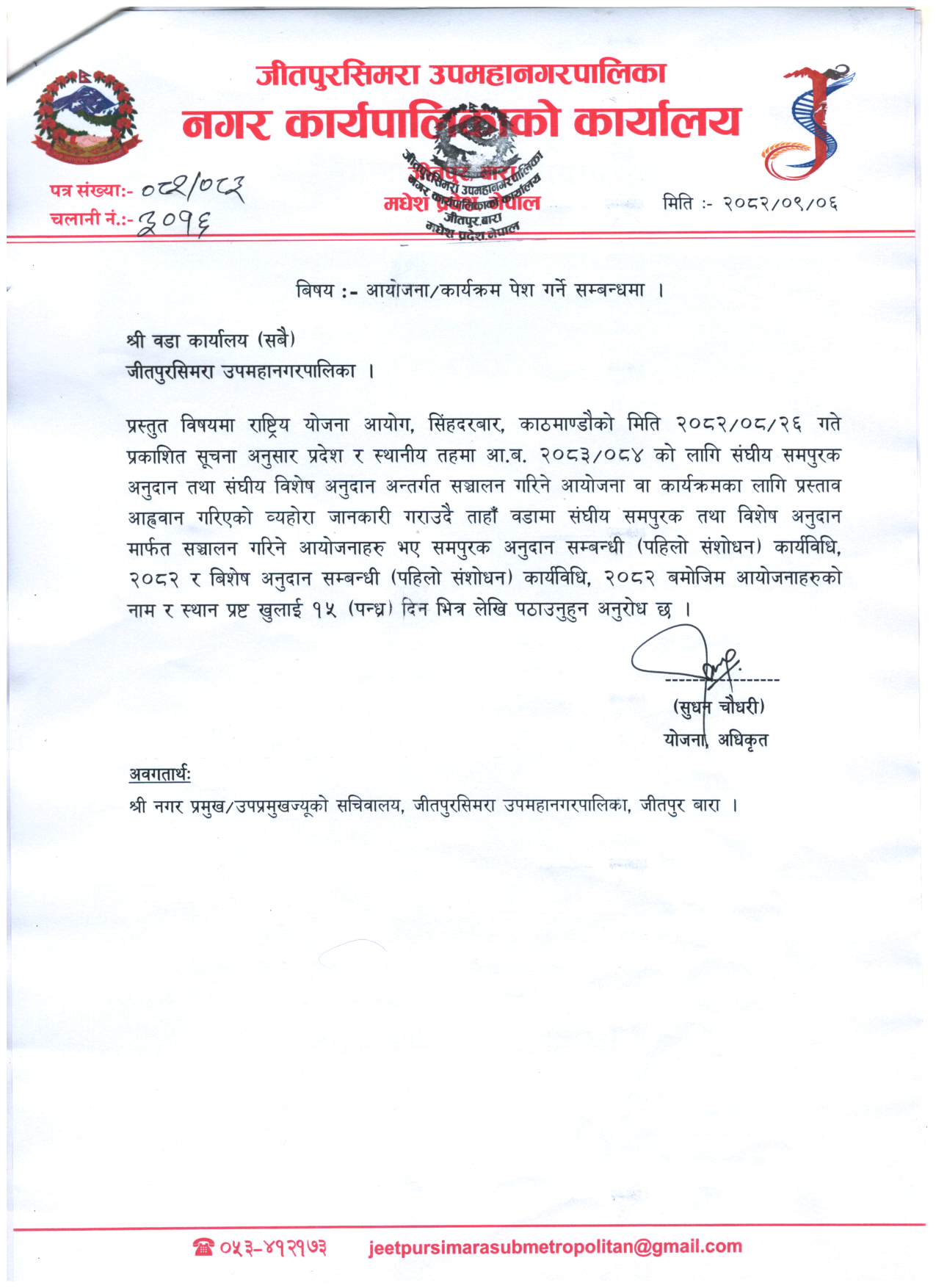 info@jeetpursimaramun.gov.np, jeetpursimarasubmetropolitan@gmail.com