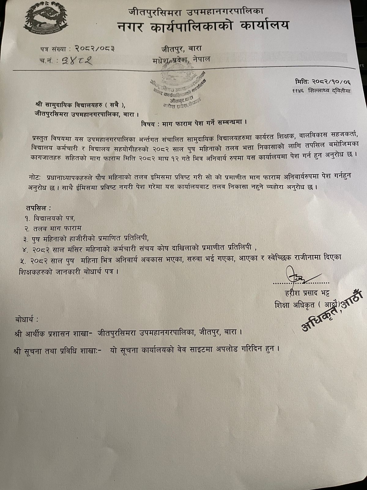 श्री समाुदायिक विद्यालयहरु(सबै), माग फाराम पेश गर्ने सम्बन्धी सूचना ।