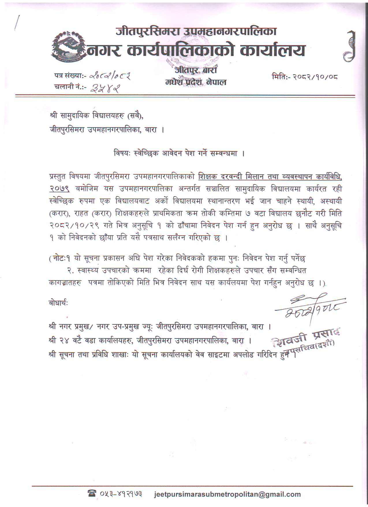 info@jeetpursimaramun.gov.np, jeetpursimarasubmetropolitan@gmail.com