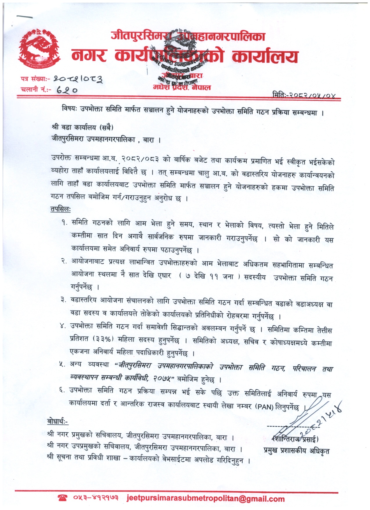 info@jeetpursimaramun.gov.np, jeetpursimarasubmetropolitan@gmail.com