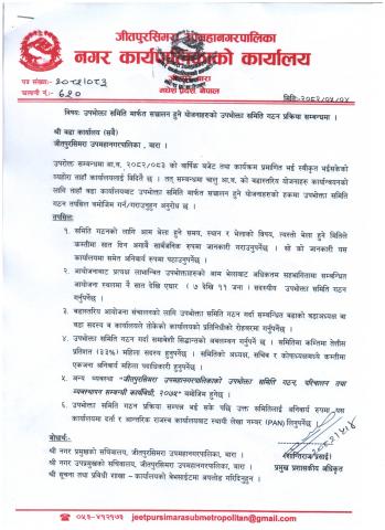 उपभोक्ता समिति मार्फत सञ्चालन हुने योजनाहरुको उपभोक्ता समिति गठन प्रक्रिया सम्बन्धी सूचना ।