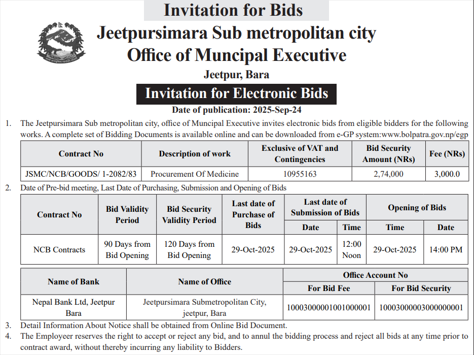 » औषधि खरिदको बोलपत्र आह्वान सम्बन्धी सूचना ।