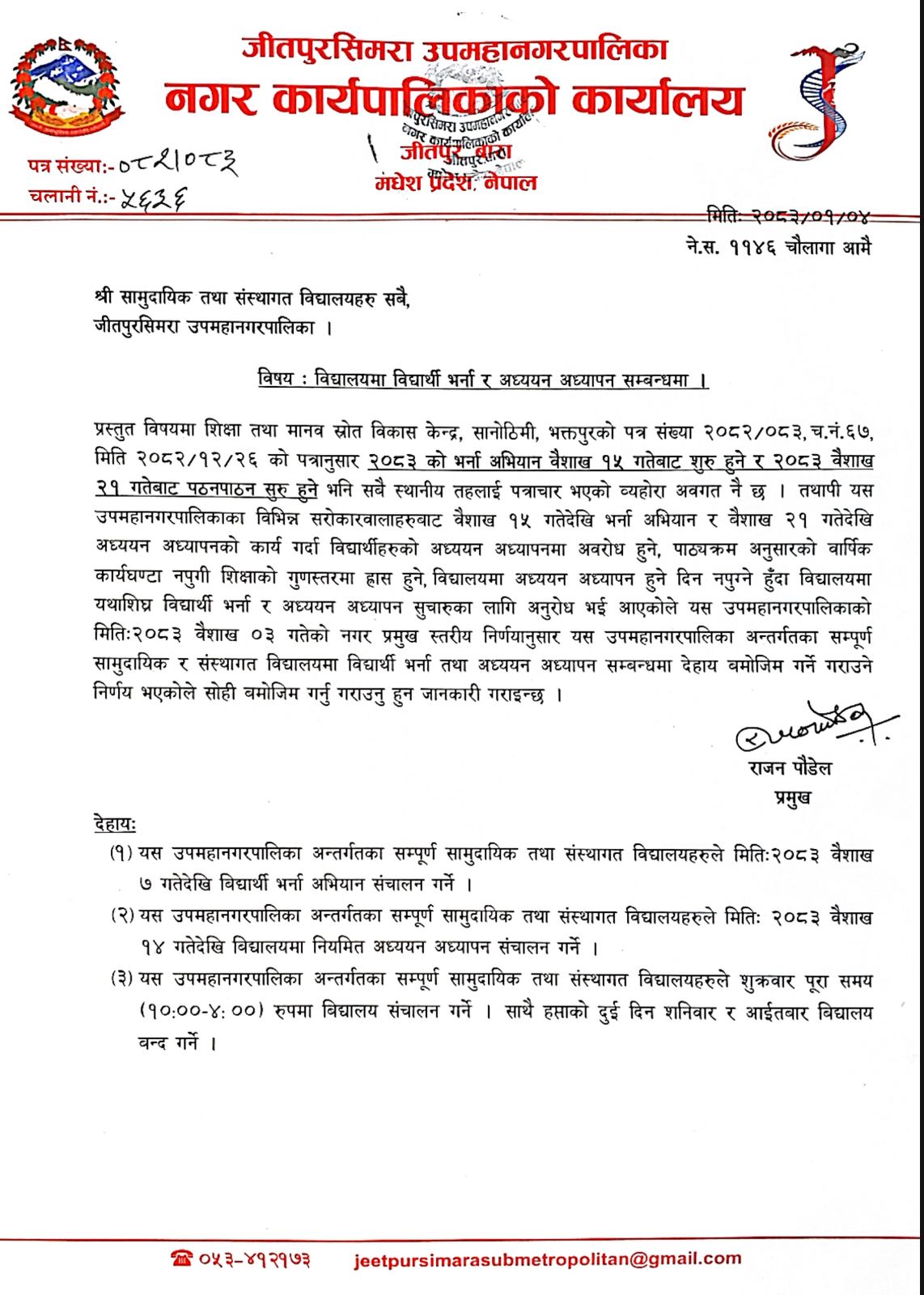info@jeetpursimaramun.gov.np, jeetpursimarasubmetropolitan@gmail.com