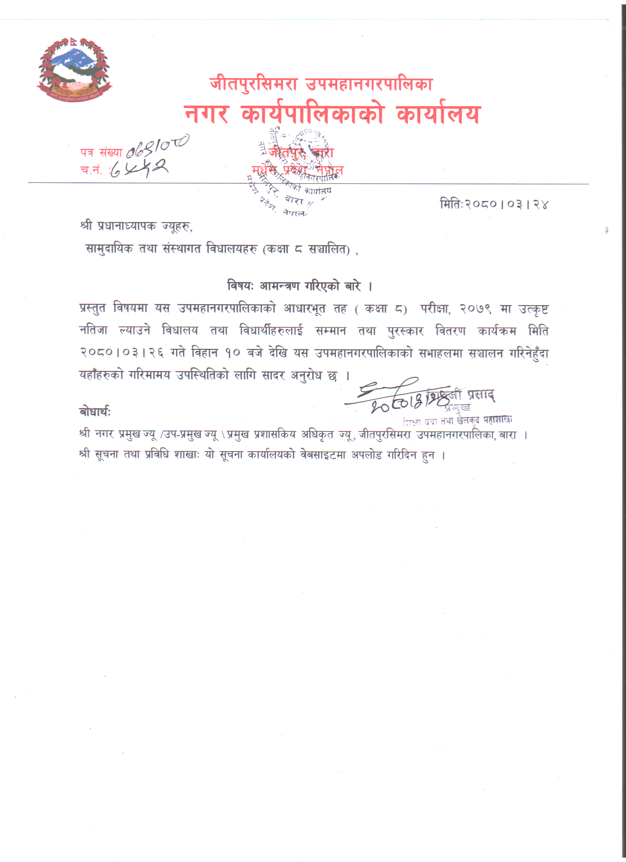 info@jeetpursimaramun.gov.np, jeetpursimarasubmetropolitan@gmail.com