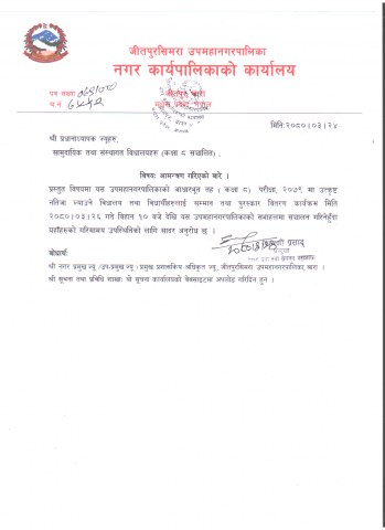 » श्री प्रधानाध्यापक ज्यूहरु, सामुदायिक तथा संस्थागत विद्यालयहरु(कक्षा ८ सन्चालित), आमन्त्रण गरिएको बारे ।