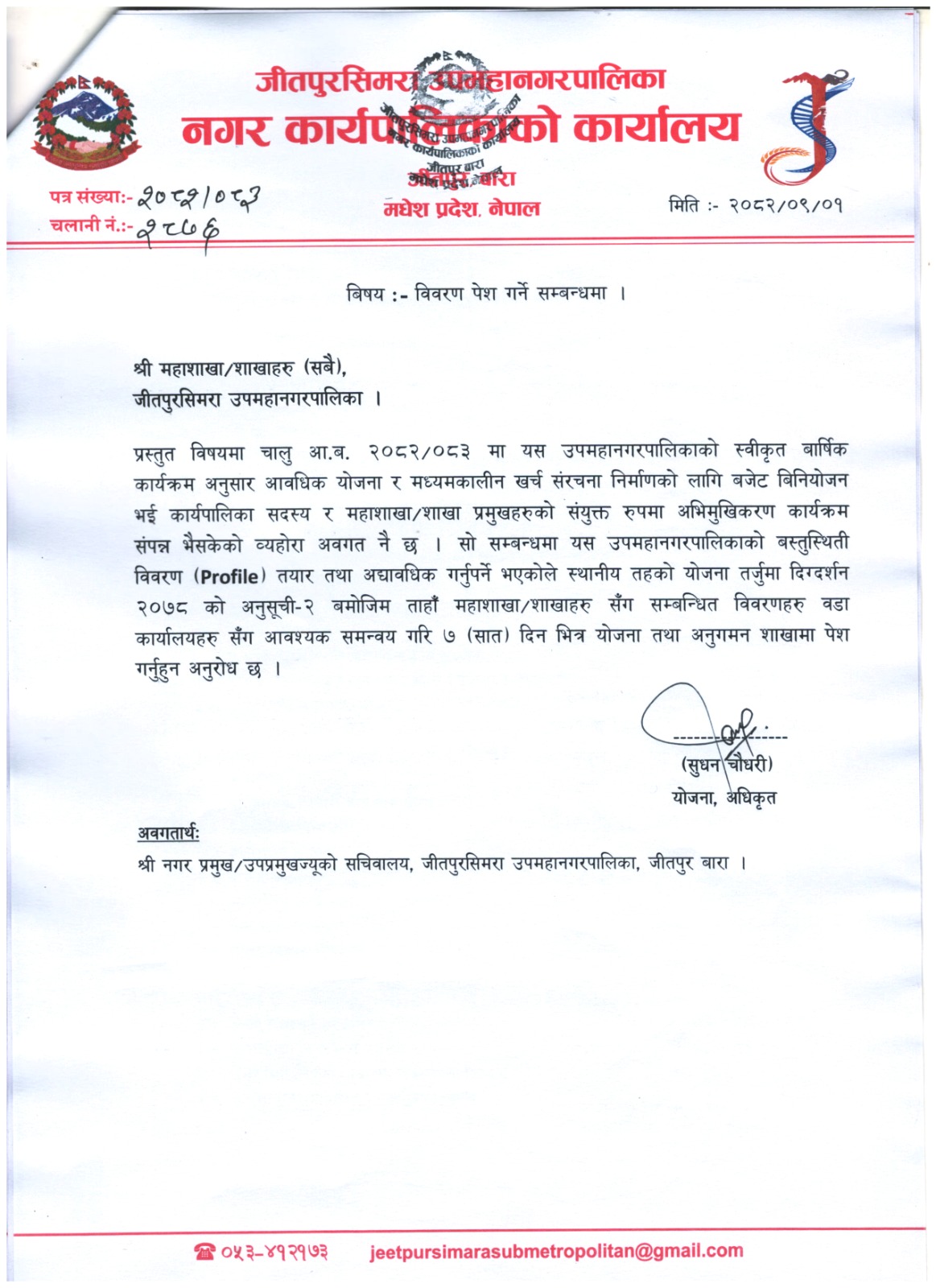 info@jeetpursimaramun.gov.np, jeetpursimarasubmetropolitan@gmail.com