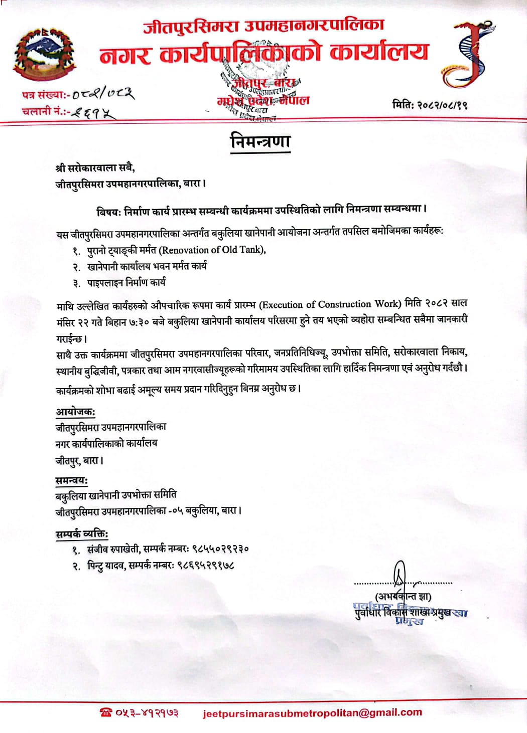 info@jeetpursimaramun.gov.np, jeetpursimarasubmetropolitan@gmail.com