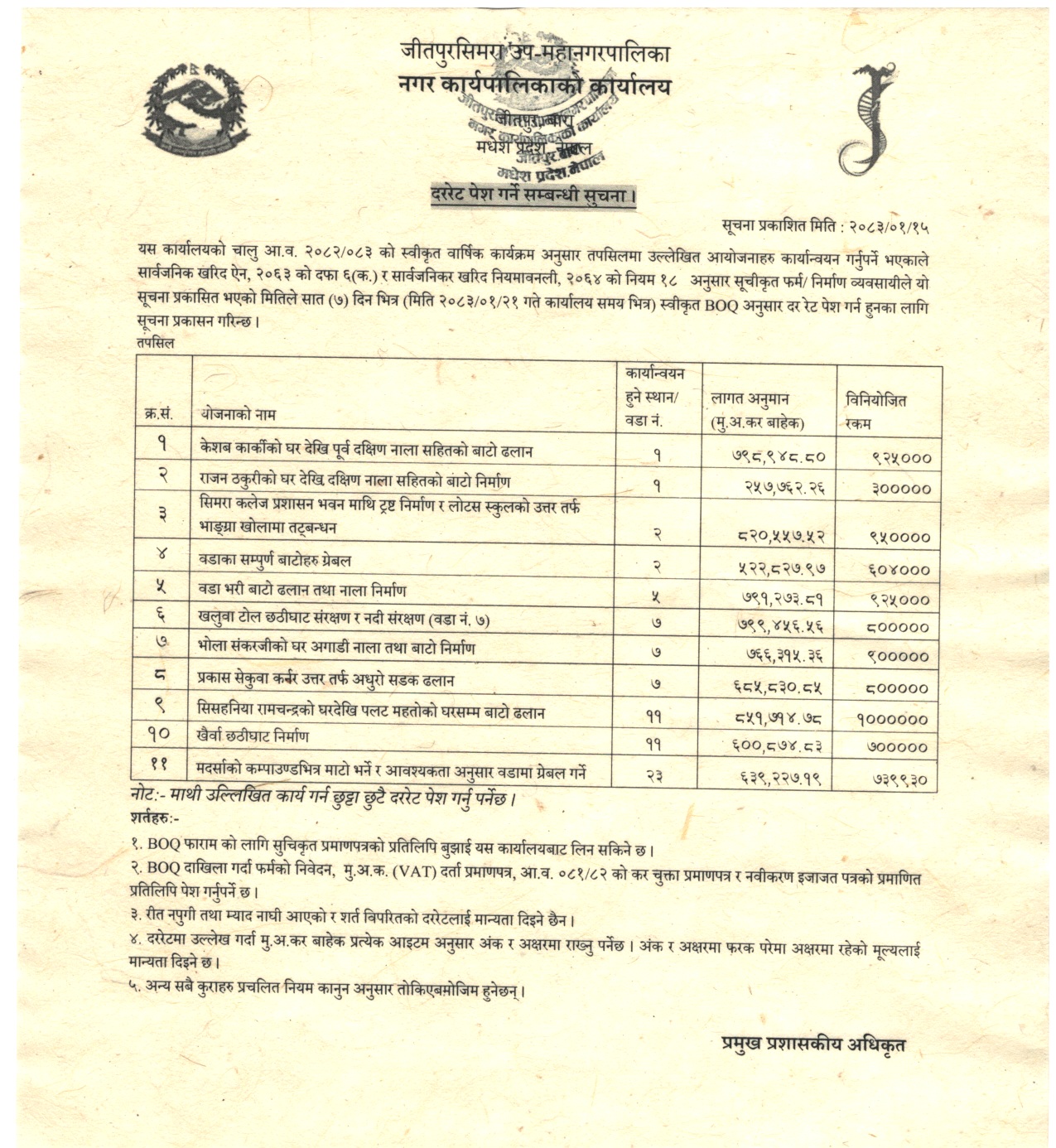 info@jeetpursimaramun.gov.np, jeetpursimarasubmetropolitan@gmail.com