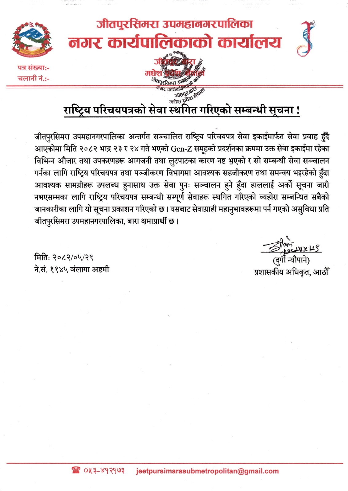 info@jeetpursimaramun.gov.np, jeetpursimarasubmetropolitan@gmail.com